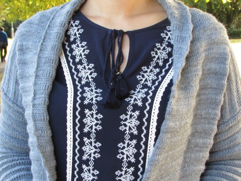 2. If you are wearing a rather plain cardigan, team it with a top that has interesting details.